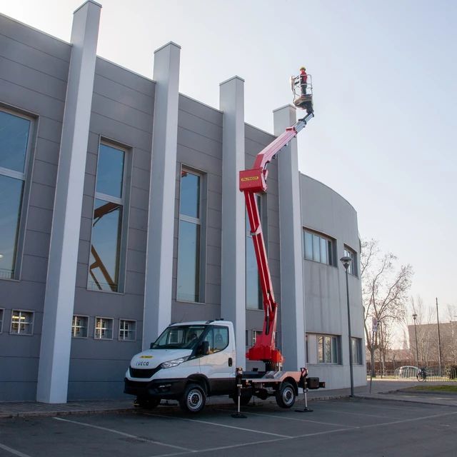 Ha una capacità massima di carico di 225 kg (2 operatori + attrezzi). La rotazione della parte aerea è continua grazie ad un sistema basato su di una ralla di rotazione ed una vite senza fine; la rotazione continua aumenta sensibilmente la produttività del mezzo evitando i tempi morti dovuti al riposizionamento della parte aerea. La rotazione del cestello in alluminio ( di dimensioni 140x70x1100 cm ) è di 90° + 90°.